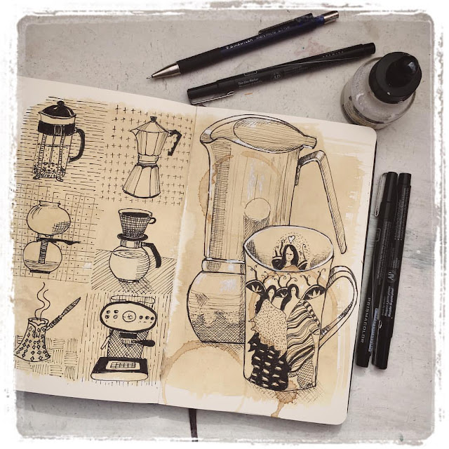 Drawing takes up as much time as a painted journal page can.